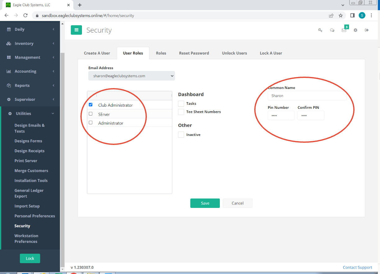 2. Click on User Roles – assign a user role to the user you just created. Fill in their name under Common Name on the right. Assign Pin number if used. Save.