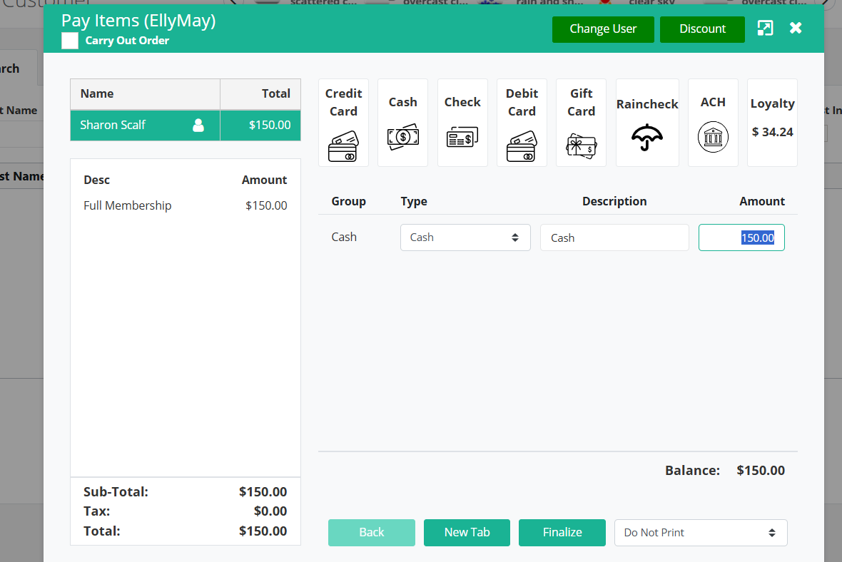 Press Continue and complete the sale, either by choosing a payment method or putting it on account.